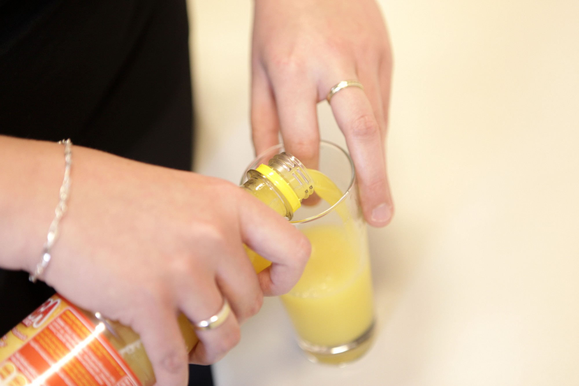 - Flaschen und andere höhere Gefäße (z. B. Vasen) sollten Sie an die Wand schieben.
